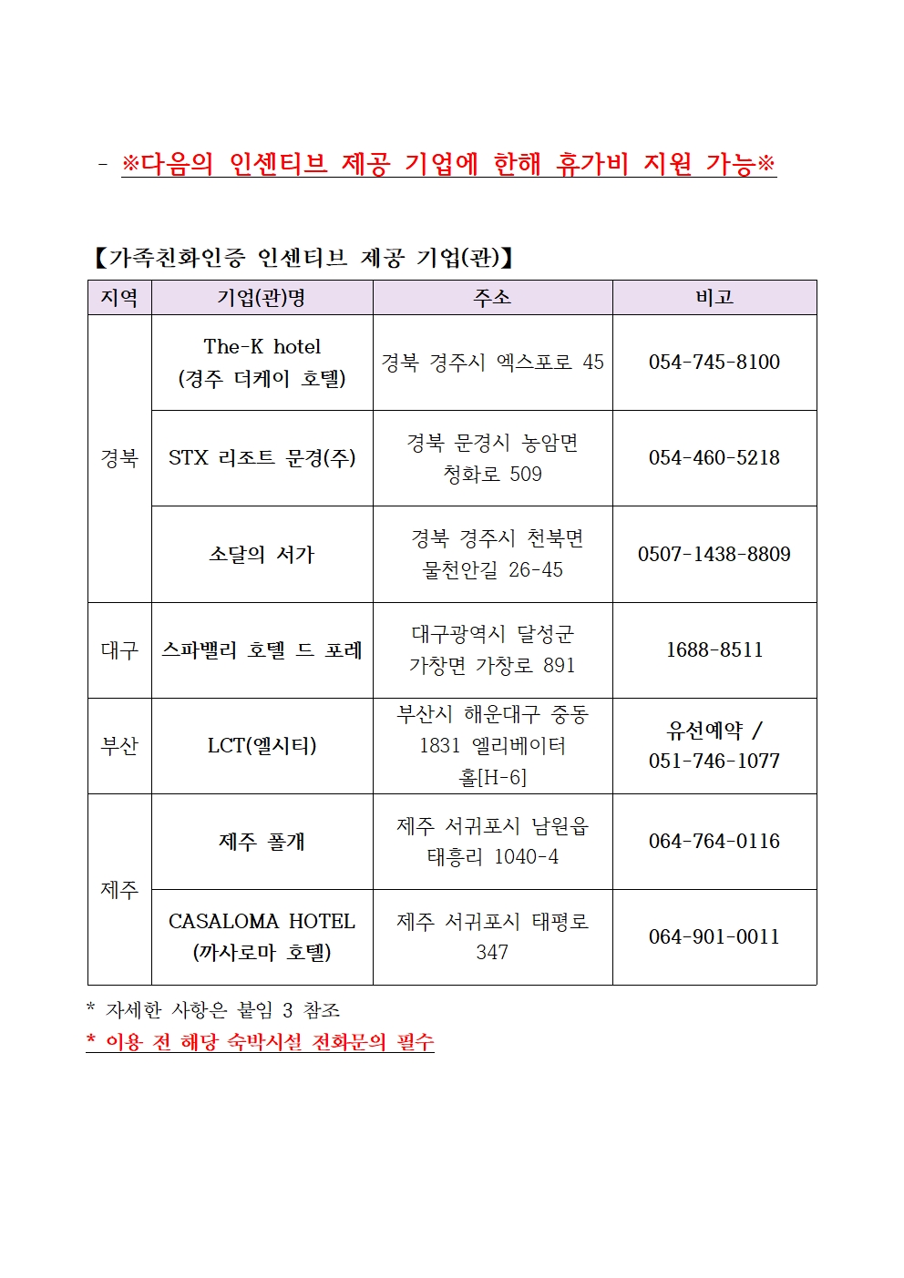 도내 지정 휴양시설 숙박 지원금